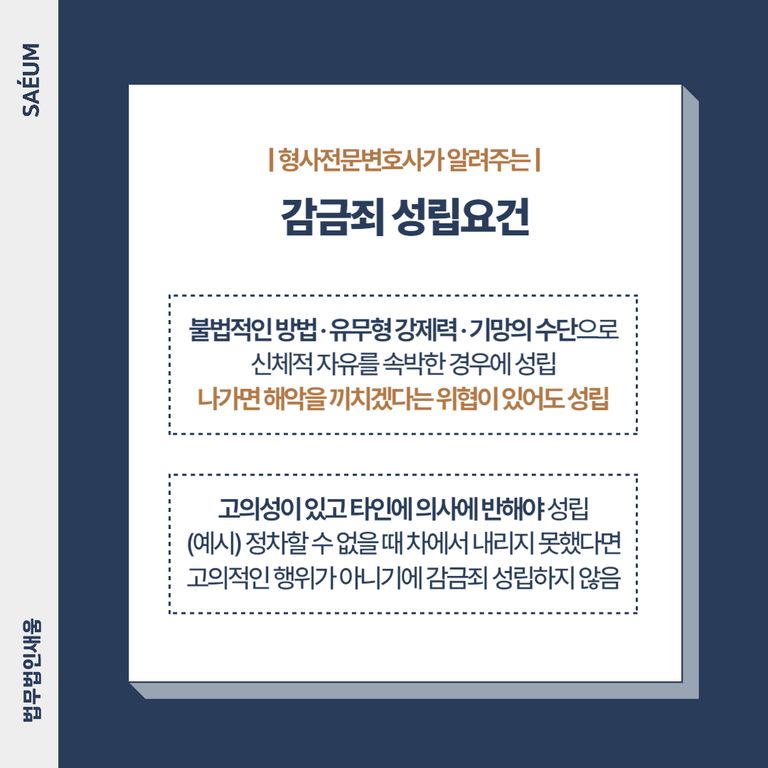 최근에는 헤어진 연인과 가족을 감금하는 일이 화두가 되고 있습니다. 다툼이 있거나 혹은 이별을 통보받은 후 옛 연인과 그 가족들이 밖으로 나가지 못하게 훼방을 놓는 등의 행동으로 상대를 가두면 감금죄가 성립되어 처벌받을 수 있습니다. 오늘은 형사전문변호사와 함께 감금죄 혐의를 의심받을 때 상황별로 어ᄄᅠᇂ게 대응해야 하는지 알아보도록 하겠습니다.