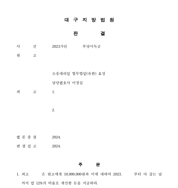 저는 즉각 입금 받은 자를 피고로 하여 민사소송 부당이득반환청구소송을 제기하였고 법원은 원고 승소 판결을 선고하여 의뢰인은 피해액을 반환받았습니다.