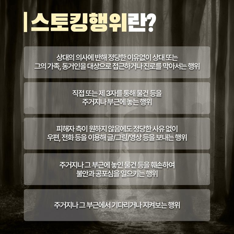 오늘은 그 피해 중 하나인 스토킹 범죄를 당했을 때 어떻게 조치를 취할 수 있는지 살펴보려고 합니다.