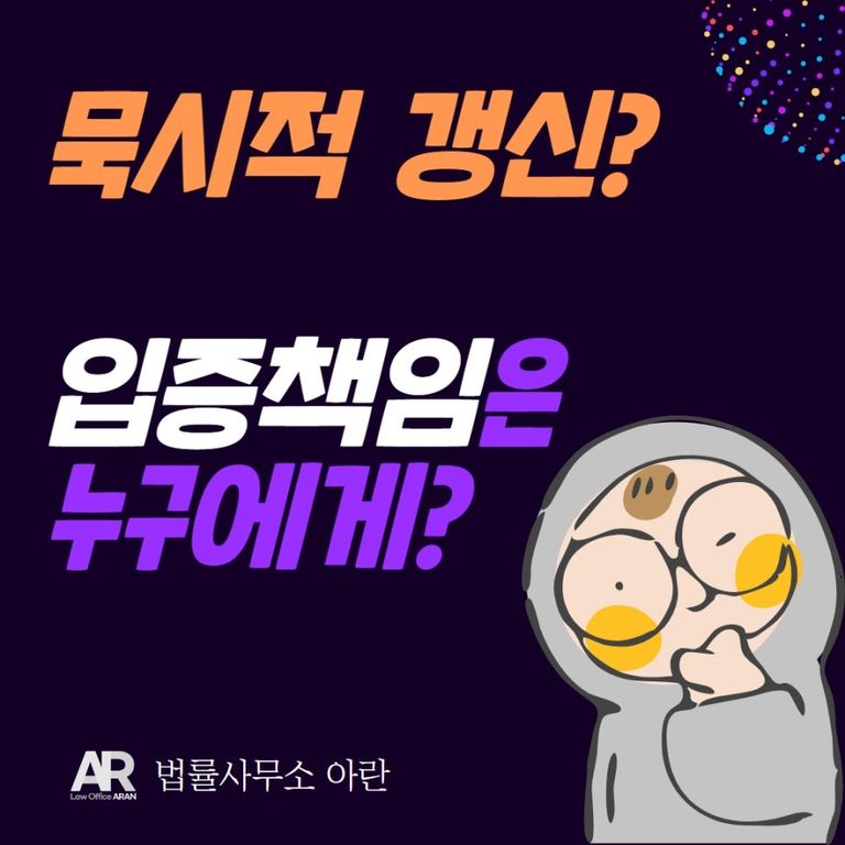 그러므로 묵시적 갱신을 부정하는 쪽에게 입증책임이 있다는 점을 명심하셔서 분쟁을 유리하고, 슬기롭게 풀어나가시는 것을 권유드립니다.