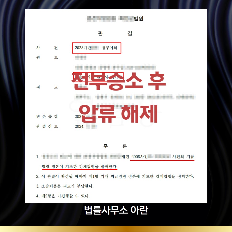 이제는 채무의 굴레에서 벗어나 양지에서 떳떳한 삶을 살수 있게 된 것이지요. 압류가 마침내 해제되었다는 소식에 누구보다 기뻐하시던 의뢰인의 모습에서 저또한 큰 보람을 느꼈던 사건입니다.
