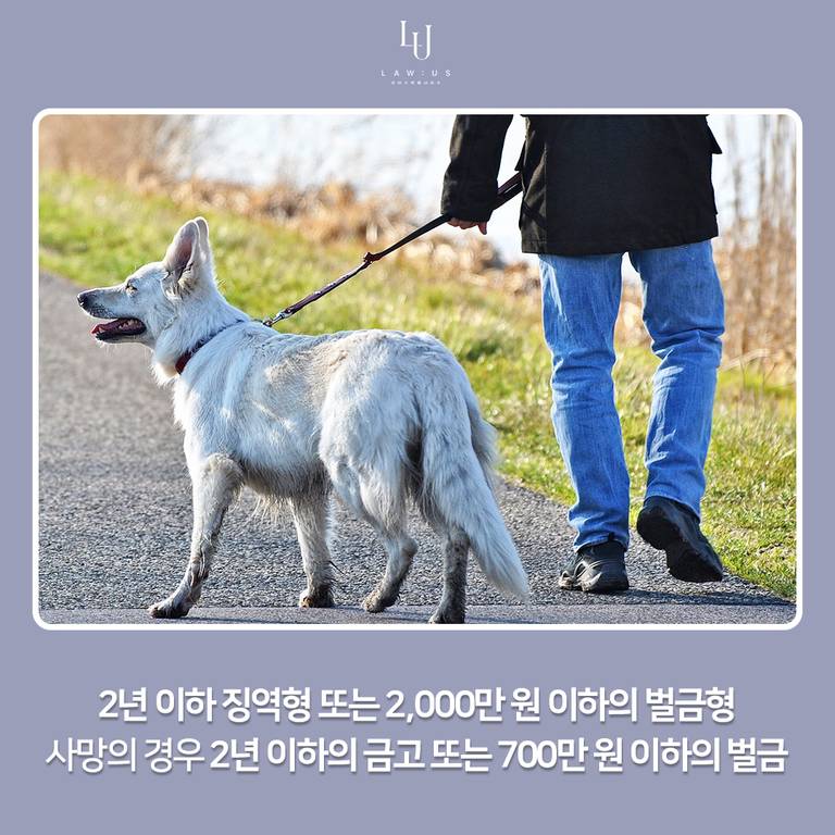 견주는 2년 이하 징역형 또는 2,000만 원 이하의 벌금형을 받게 됩니다.