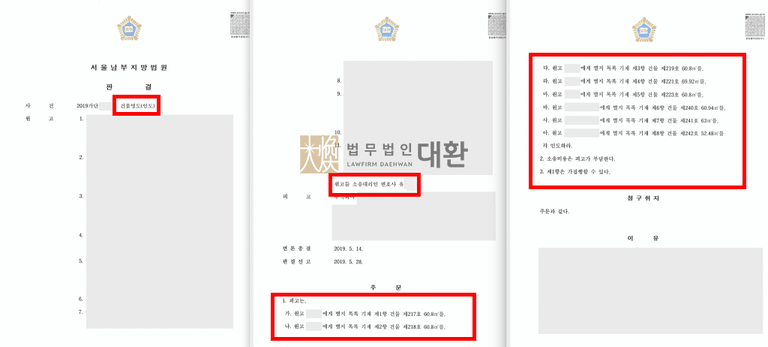 법무법인 대환에서는 승소판결을 받더라도 각 호실 별 소유자가 다르고, 임차인이 가벽 등 경계점을 없애고 여러 호실에 걸쳐 시설물을 설치하였기 때문에 동시에 집행이 이루어지지 않으면 강제집행이 불능한 상황이 발생할 수도 있는 어려운 사건이었지만, 승소판결 이후 집행과정에서 법원 집행관과 긴밀히 협의하여 차질없이 강제집행까지 깔끔하게 마무리에 성공하였습니다.