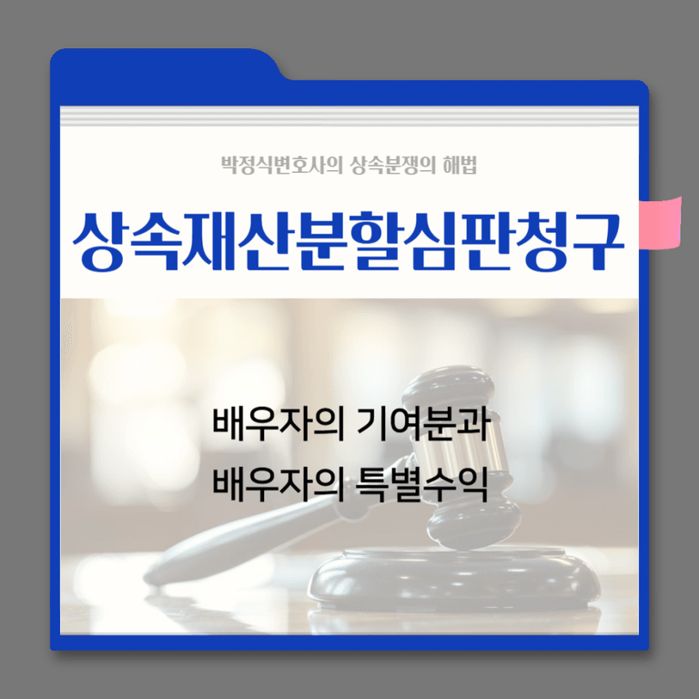 또한 위와 같은 기여분결정심판청구의 경우는 보통 상속재산분할심판청구와 함께 진행하는 경우가 보통이며, 이 경우 배우자는 자녀들을 상대로 “기여분결정 및 상속재산분할심판청구”라는 소송을 제기하여 배우자가 본인의 기여분을 인정받아 배우자의 법정상속분보다 더 많은 재산을 상속할 수 있습니다.
