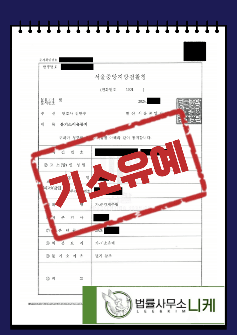 그 결과 의뢰인은 준강제추행 혐의를 받고 법정형으로 최소 벌금형 최대 10년 이하의 징역형을 선고받을 수 있었음에도 불구하고 기소유예 처분을 받을 수 있었습니다.