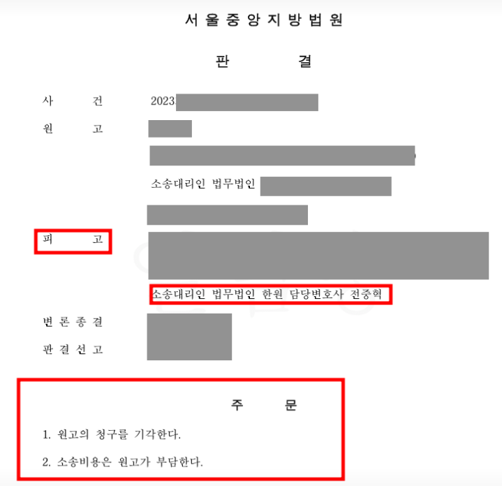 "결국 우리 법원은 원고 청구를 전부 기각하였고, 본 건 의뢰인은 수억대의 채무를 질 위기에서 벗어날 수 있었습니다"