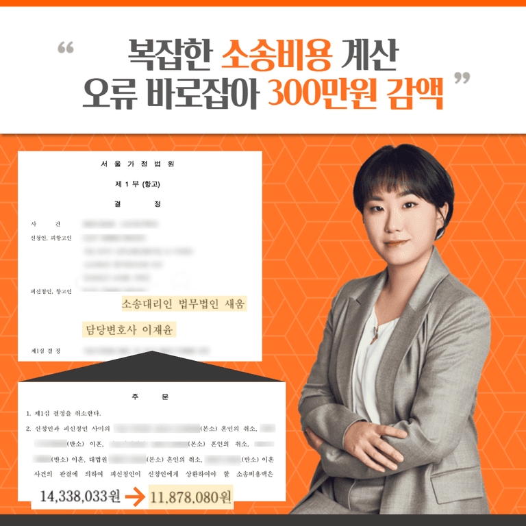 의뢰인은 재판 결과에 불복하여 항소, 상고를 진행하였으나 결국 1심이 확정되며 항소심 및 상고심 소송비용을 의뢰인이 전부 부담하는 내용으로 판결이 선고되었습니다. 의뢰인은 상대방으로부터 1,300만 원 이상의 소송비용심판 청구를 받게 된 바, 이를 조정하고자 법무법인 새움을 방문하였습니다.