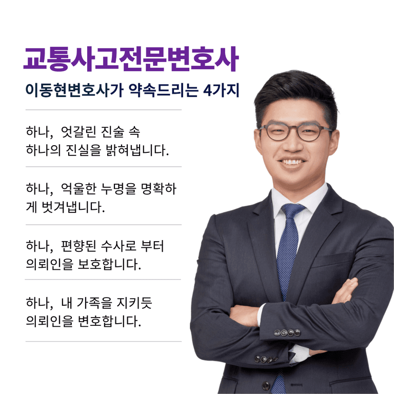 안녕하세요. 저는 수백 건의 교통사고 사건에서 무죄, 무혐의, 기소유예 등 많은 좋은 결과를 도출해 낸 대구교통사고전문변호사 이동현변호사 입니다.