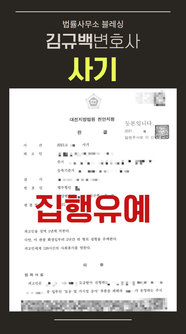 안녕하세요. 법률사무소 블레싱, 사기전문변호사, 김규백입니다.