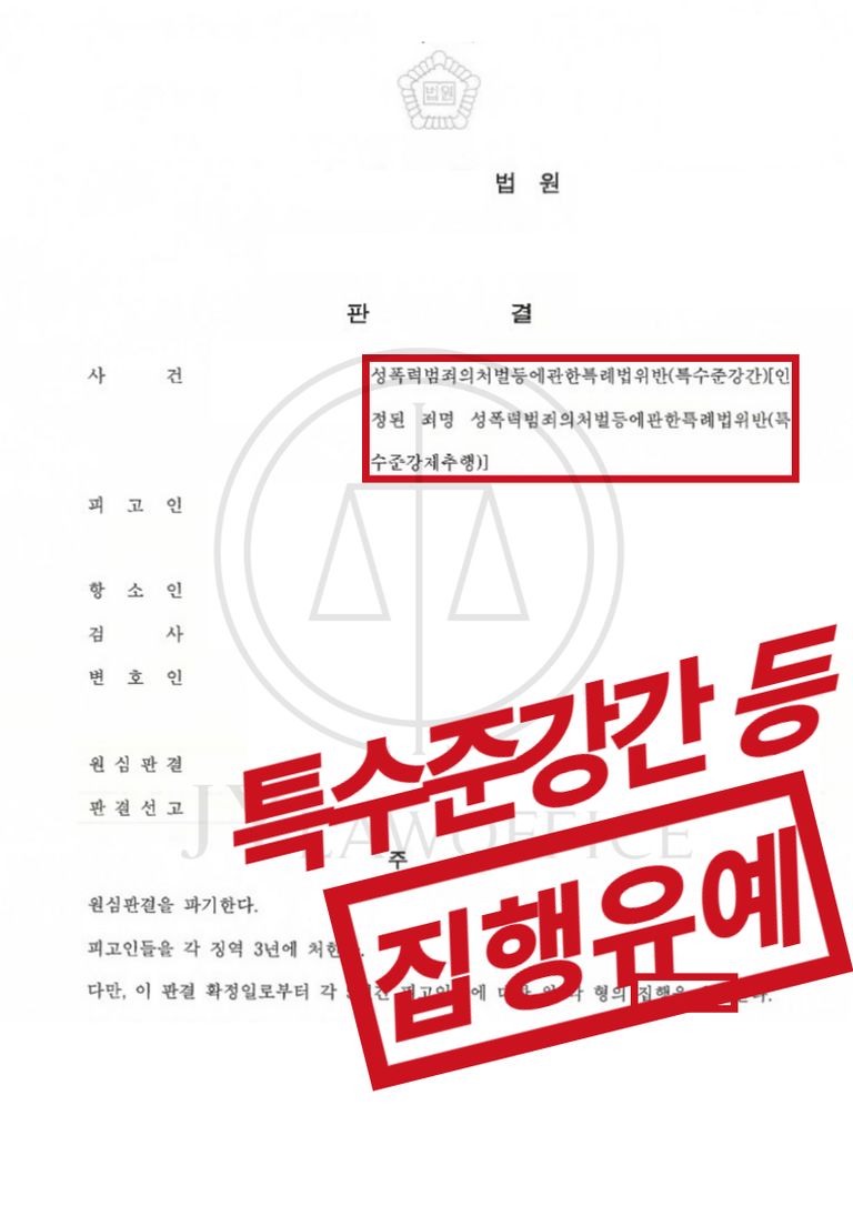 의뢰인은 이와 같은 변호인의 조력에 따라, 특수준강간 및 특수준강제추행 혐의에 대해서 최종 집행유예를 선고받고 무사히 사건을 종결시킬 수 있었습니다.