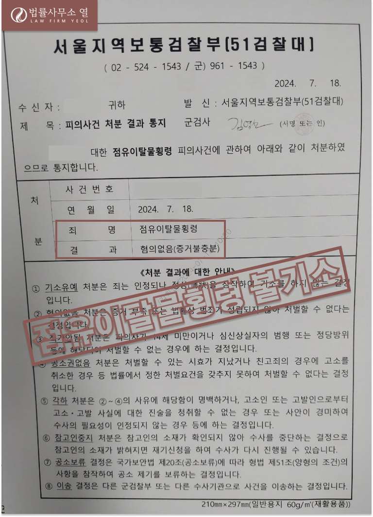 만일 위 사건과 유사한 어려움에 처해 계신다면 무혐의를 받을 수 있도록 조속히 법률전문가의 조력을 받으실 것을 권유해 드립니다.