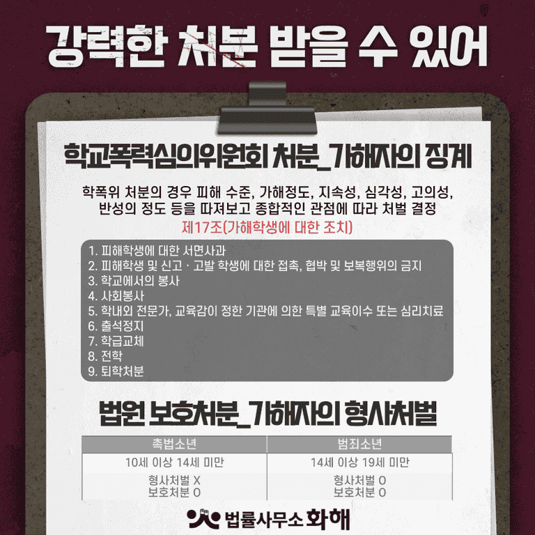 오늘은 법률사무소 화해에서 학교폭력과 처벌에 대해 알려드릴게요.