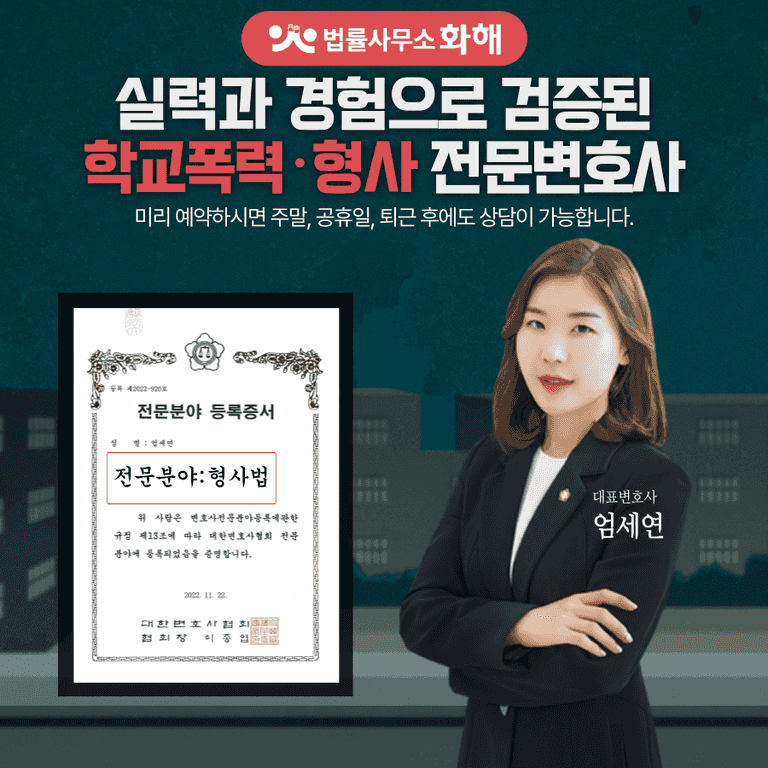 지금 바로 법률사무소 화해의 대구학교폭력 전문 변호사와 상담하셔서 도움받으시길 권해드립니다. 학교폭력피해자의 곁에 법률사무소 화해가 함께 하겠습니다.