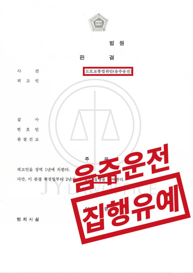 이와 같은 변호인의 조력에 따라, 의뢰인은 음주운전 혐의에 대해 '집행유예'판결을 받고 무사히 사건을 마무리할 수 있었습니다.