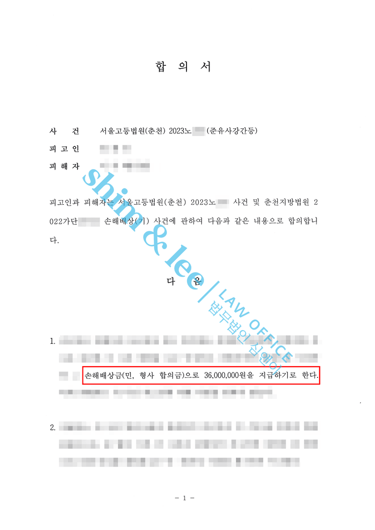 - 결국 가해자 가족들이 합의금 더 마련해와 3,600만 원에 합의 진행