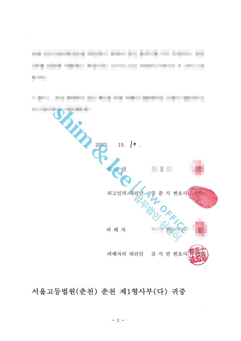 - 심앤이는 빠르게 진술조서 확보 후 죄명 정확히 검토하여 고소장 제출하고 수사관과 소통하여 의견서 제출해 기소 의견 송치될 수 있도록 수사 조력
