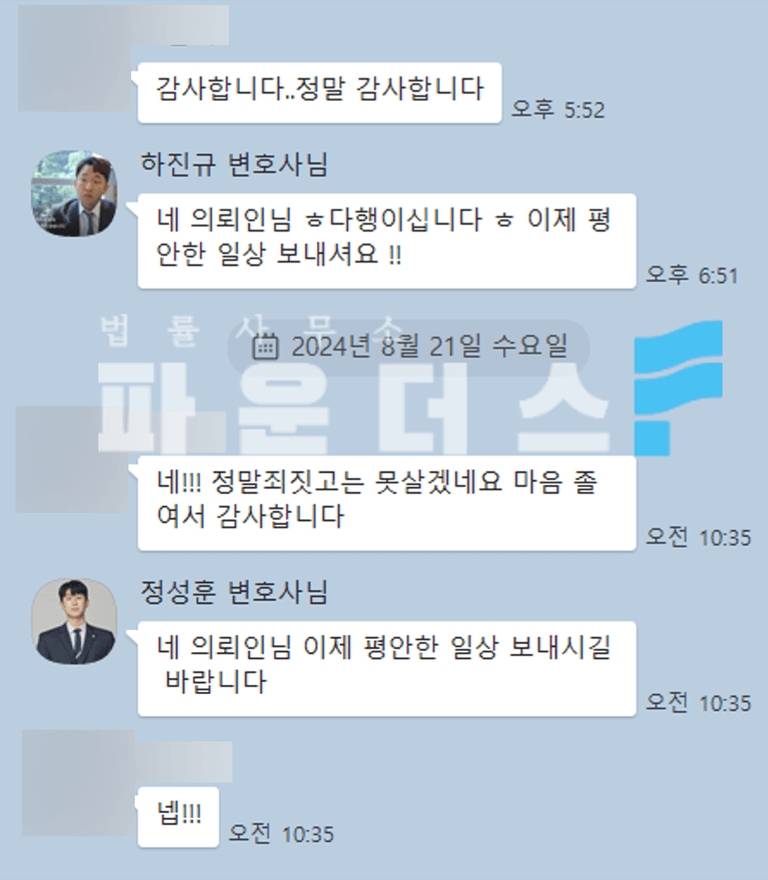 벌금형 선고 이후 의뢰인은 정식재판청구를 희망하였고 변호인은 A 씨에 조심스레 연락을 시도하여 합의 진행 및 합의금 조율을 이어 나가는 데에 조력을 드렸습니다.
