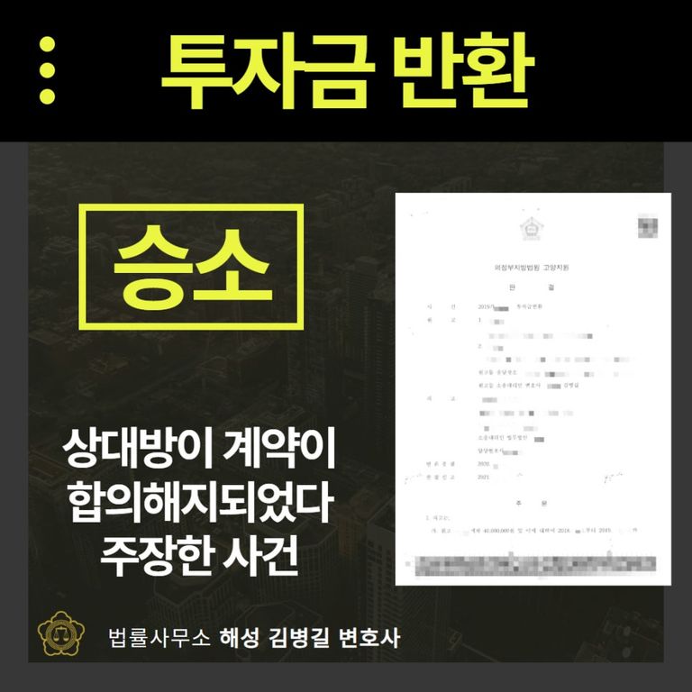 따라서 지금부터 민사전문변호사인 제가 직접 투자금반환을 받아낸 성공사례를 말씀해드릴 테니 투자금반환에 난감한 상황에 처한 분들께서는 이 글을 꼭 끝까지 읽어봐 주시길 바랍니다.