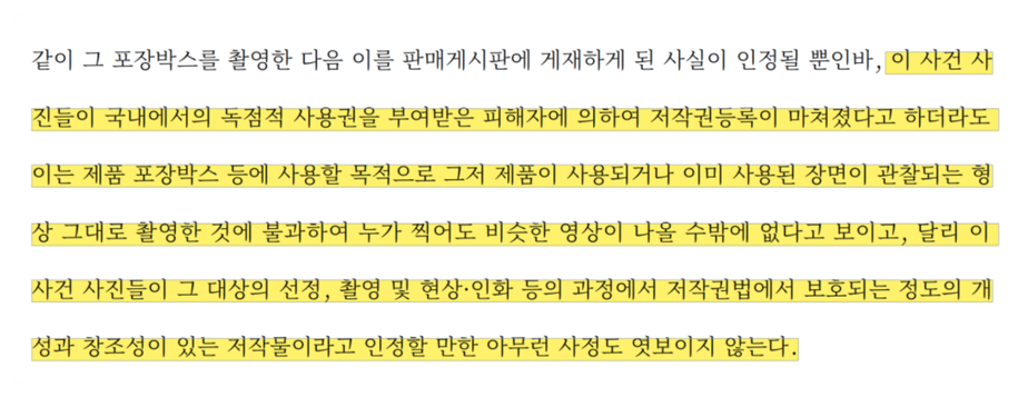 설령 해당 사진을 사용했더라도 저작물이 아니니 침해행위로 볼 수 없다는 판례가 존재합니다.