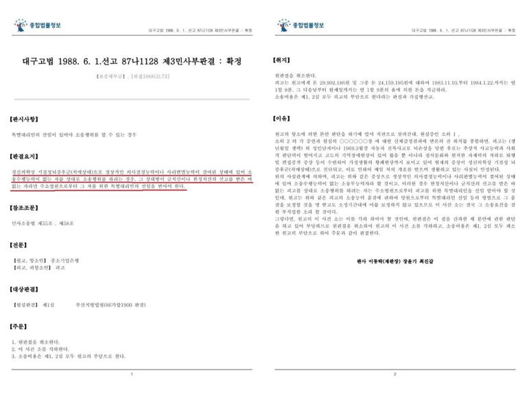 그렇다면 의사무능력자인 성인이 재판상 이혼 소송을 제기하거나 그 사람을 상대로 소송을 제기할 수 있을까요. 단적으로 결론을 내릴 수는 없을 것입니다. 그 사람의 의사무능력 상태가 영구적인지 일시적인지 일반인이 의학적ㆍ법적으로 판단할 수 없기 때문입니다. 소송을 진행하는 과정에서 소송 당사자가 소송능력이 없는 사람이라는 것이 밝혀지면 그에 대한 절차적 조치를 취해야 하고 그렇게 하지 않는다면 그 소송은 적법한 소송 요건을 갖추지 못하게 되어 부적법 각하 될 것입니다.