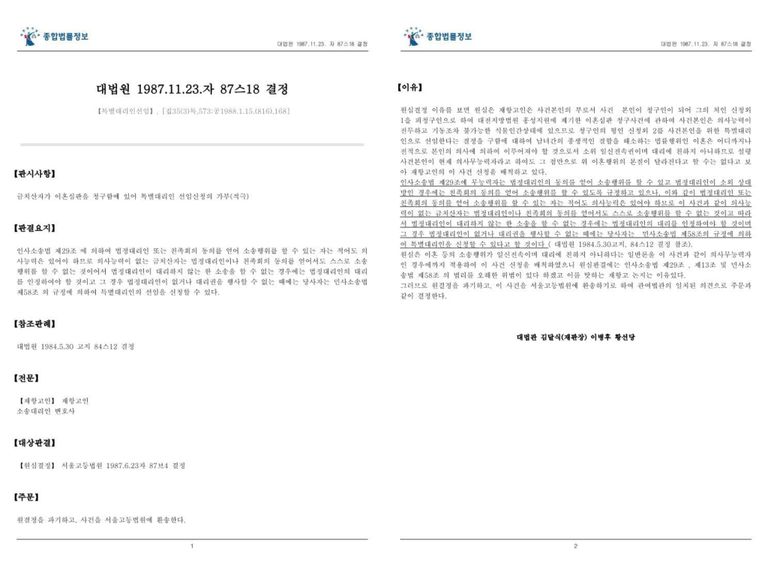 ② 법원은 소송계속 후 필요하다고 인정하는 경우 직권으로 특별대리인을 선임ㆍ개임하거나 해임할 수 있다.
