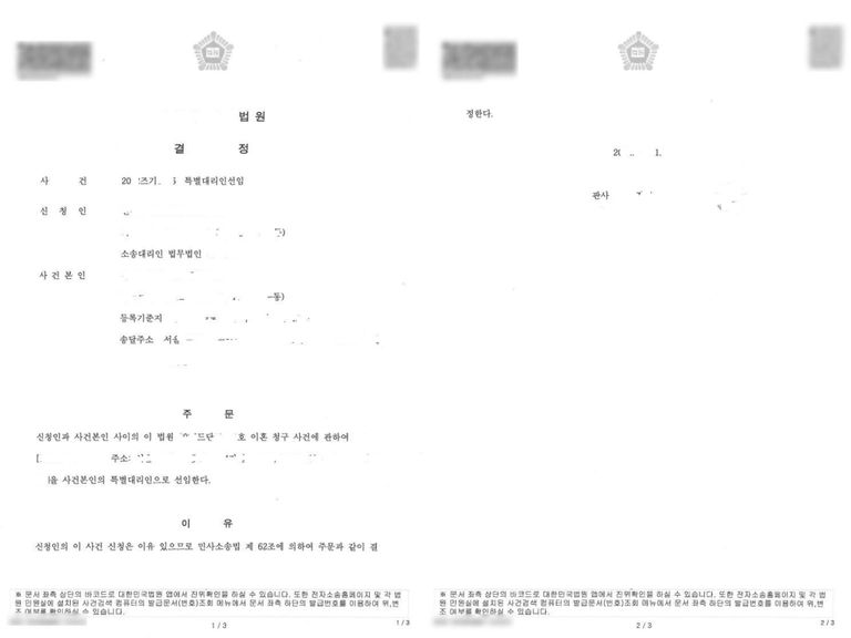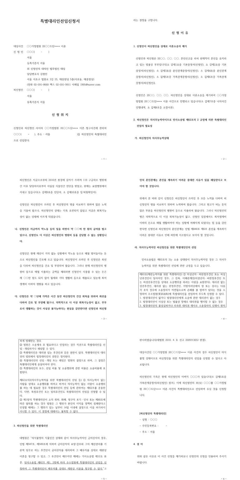 ※ 위 특별대리인선임신청서는 위 상황을 참고하여 임의로 작성한 것입니다.