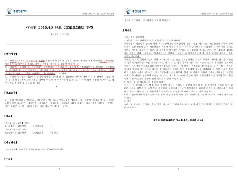 - 재판상 이혼 소송에서도 당사자 일방이 의사무능력자면 그를 위한 특별대리인 선임이 가능하다 할 것입니다.