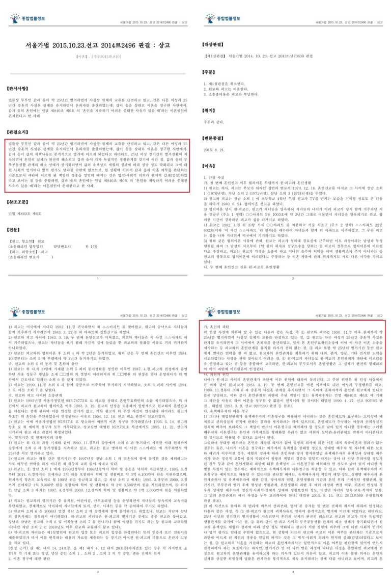 “법률상 부부인 갑과 을이 약 25년간 별거하면서 사실상 일체의 교류를 단절하고 있고, 갑은 다른 여성과 25년간 중혼적 사실혼 관계를 유지하면서 혼외자를 출산하였는데, 갑이 을을 상대로 이혼을 청구한 사안에서, 갑과 을이 갑의 귀책사유로 본격적으로 별거에 이르게 되었다고 하더라도, 25년 이상 장기간의 별거생활이 지속되면서 혼인의 실체가 완전히 해소되고 갑과 을이 각자 독립적인 생활관계를 갖기에 이른 점, 갑과 을의 부부공동생활 관계의 해소 상태가 장기화되면서 갑의 유책성도 세월의 경과에 따라 상당 정도 약화되고 그에 대한 사회적 인식이나 법적 평가도 달라질 수밖에 없으므로, 현 상황에 이르러 갑과 을의 이혼 여부를 판단하는 기준으로서 파탄에 이르게 된 책임의 경중을 엄밀히 따지는 것은 법적·사회적 의의가 현저히 감쇄(감살)되었다고 보이는 점 등을 종합하면, 갑과 을의 혼인에는 민법 제840조 제6호의 ‘혼인을 계속하기 어려운 중대한 사유가 있을 때’라는 이혼원인이 존재한다.”고 판시하였습니다(서울가정법원 2015. 10. 23. 선고 2014르2496 판결).