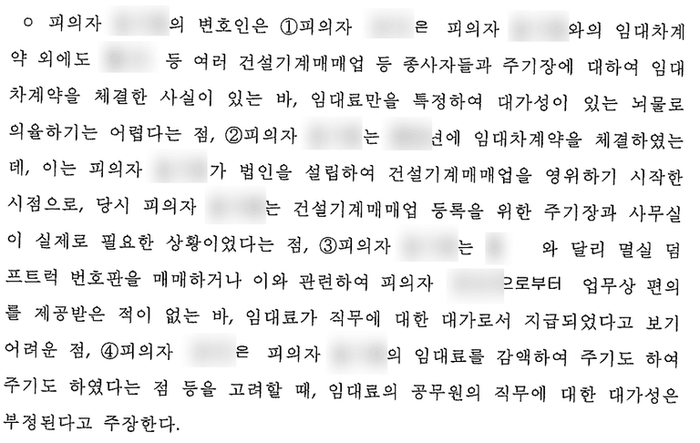 공무원 W는 의뢰인에게 임차료를 감액해주기도 하였는데 뇌물이었다면 굳이 그럴 필요가 없었을 것이라는 점 등을 들어,