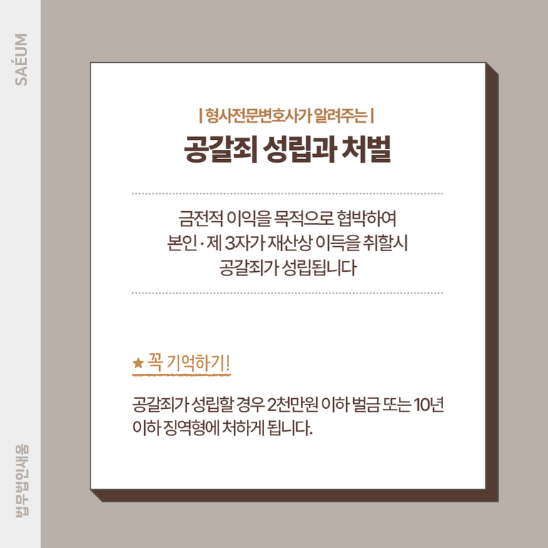이렇게 형사전문변호사와 함께 공갈죄에 대해서 알아보았습니다. 자칫 업무적인 방해가 적용되거나 혹은 전과가 있는 경우 실형이 선고되기도 해서 억울한 부분이 있다면 상세히 풀어내고 안정적으로 사건을 이끌어나갈 수 있도록 해야 하는데요. 만일 혹시라도 의심받는 등의 문제가 있다면 빠르게 변호사를 찾아가 선제적으로 대응하여 무거운 처벌을 받는 일이 없도록 주의해 보시기 바랍니다.