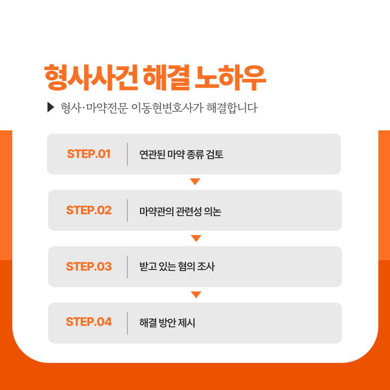 저는 마약범죄 사건에 대한 풍부한 경험과 전문성을 바탕으로, 의뢰인의 권리를 최대한 보호하며, 유리한 결과를 이끌어낼 수 있도록 최선을 다하고 있습니다. 마약범죄 혐의로 어려움에 처해 계시다면, 혼자 고민하지 마시고, 지금 바로 상담을 통해 정확한 법적 조언과 전략을 받아보시기 바랍니다.