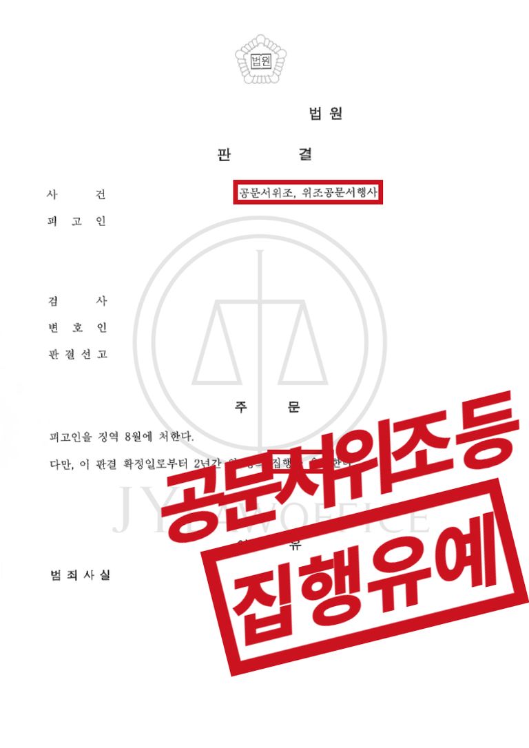 의뢰인에게 적용된 '공문서위조'혐의는 사안에 따라 10년 이하의 징역형이 내려지는 매우 중한 범죄 중 하나입니다.
