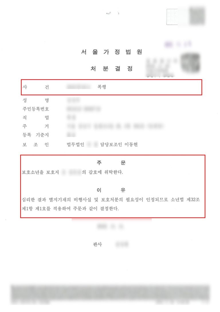 결국 이러한 주장을 받아들여, 법원은 A군에게 '보호처분 1호' 를 내렸습니다.