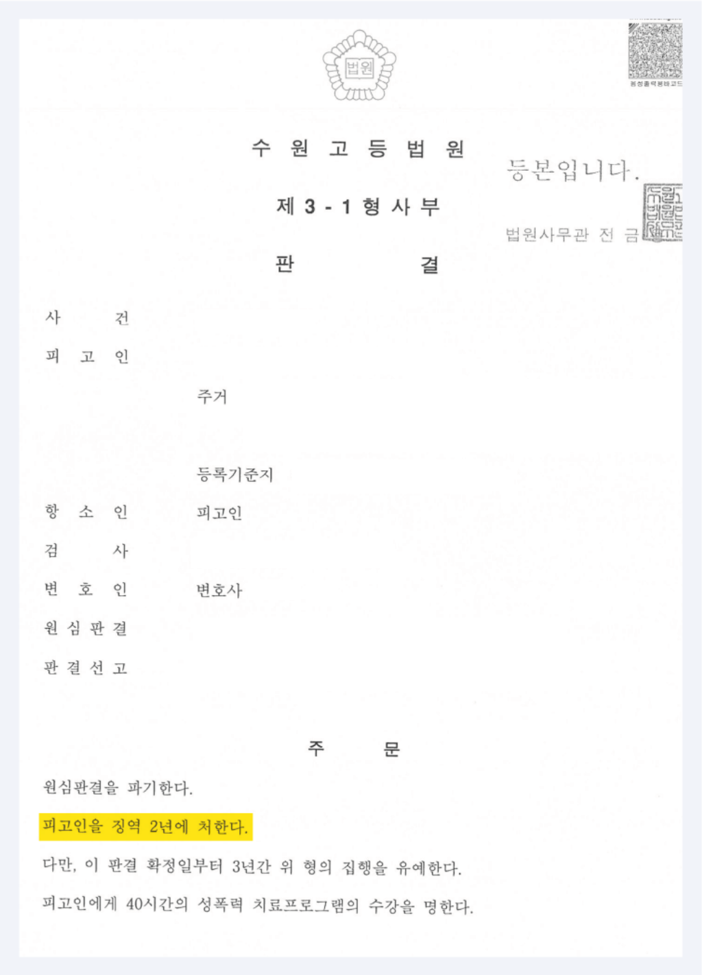 03. 성범죄 피해, 피고인 강간죄 유죄 판결