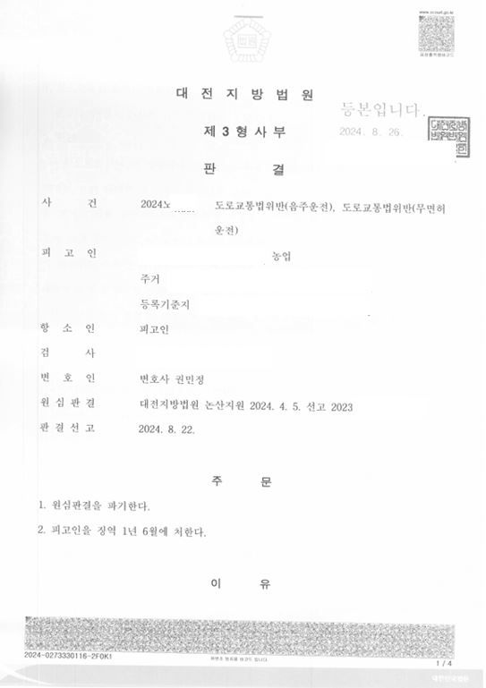 음주운전의 경우 1심의 결과가 2심에서 그대로 유지되는 경우가 많습니다. 제출할 양형자료의 차이가 거의 없기 때문인데요.