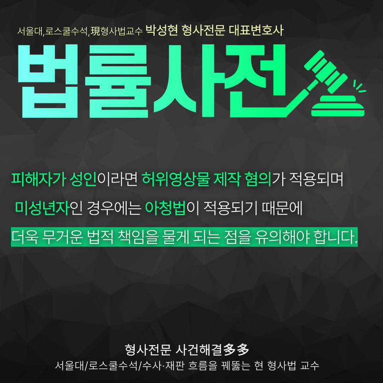 특히나 이번 #텔레그램 #딥페이크 사건만 보더라도 주변 지인들을 대상하는 범행, 이른바 #지인능욕 범죄가 많은 만큼 #청소년 이 연루될 경우 법적 미성년자를 대상으로 범행한다면 #아청법 혐의가 적용될 수 있습니다.