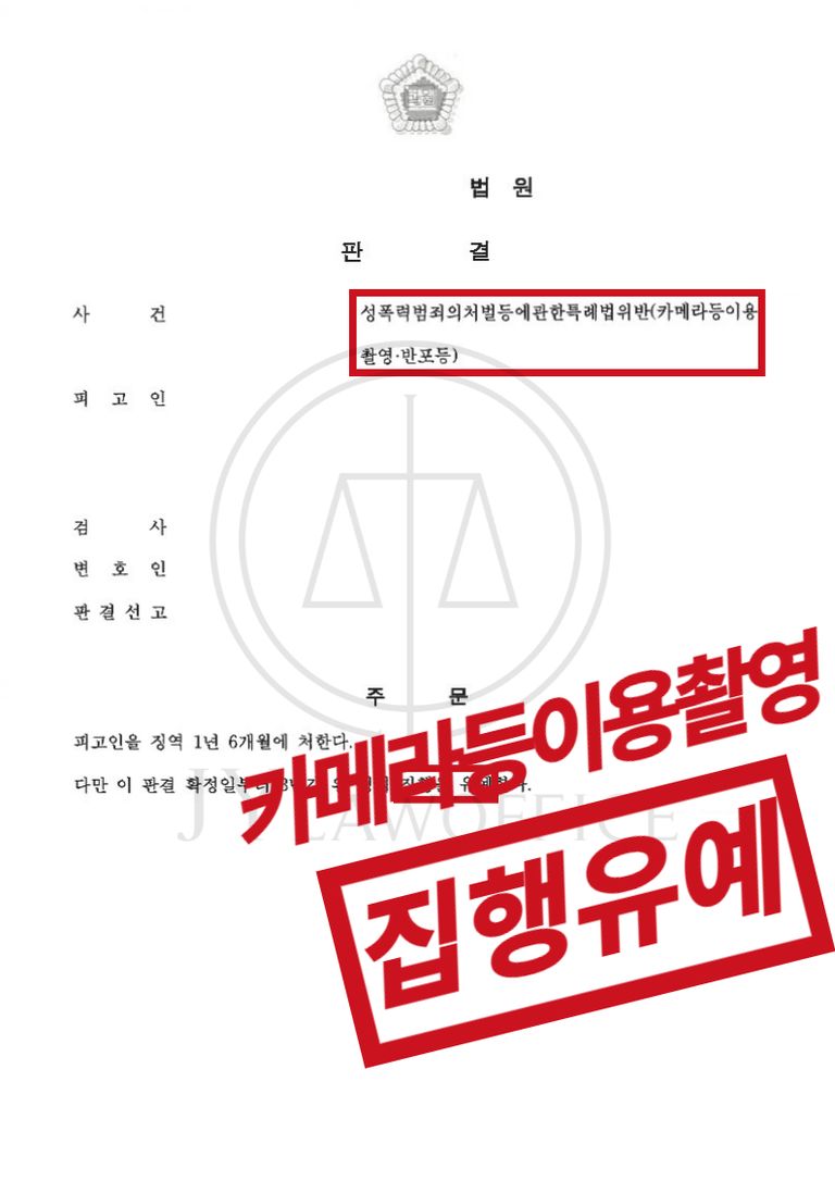 본 사건의 의뢰인은 성명불명의 피해자들의 의사에 반해 신체를 촬영한 죄로 ‘카메라등이용촬영·반포등’혐의를 받게 되었습니다. 이에 의뢰인은 앞으로의 대응 전략을 모색하기 위해 JY법률사무소를 찾아와 주셨습니다.