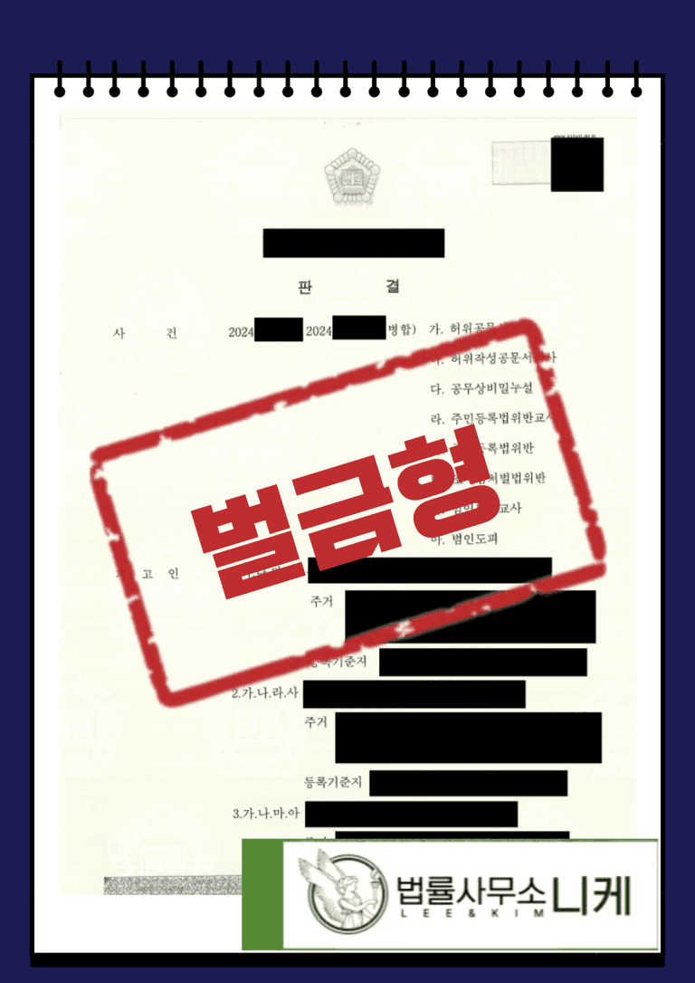 그 결과 의뢰인은 허위공문서작성 및 허위작성공문서행사 혐의를 받고 법정형으로 최소 벌금형 최대 7년 이하의 징역형을 선고받을 수 있었음에도 불구하고 벌금형 처분을 받을 수 있었습니다.