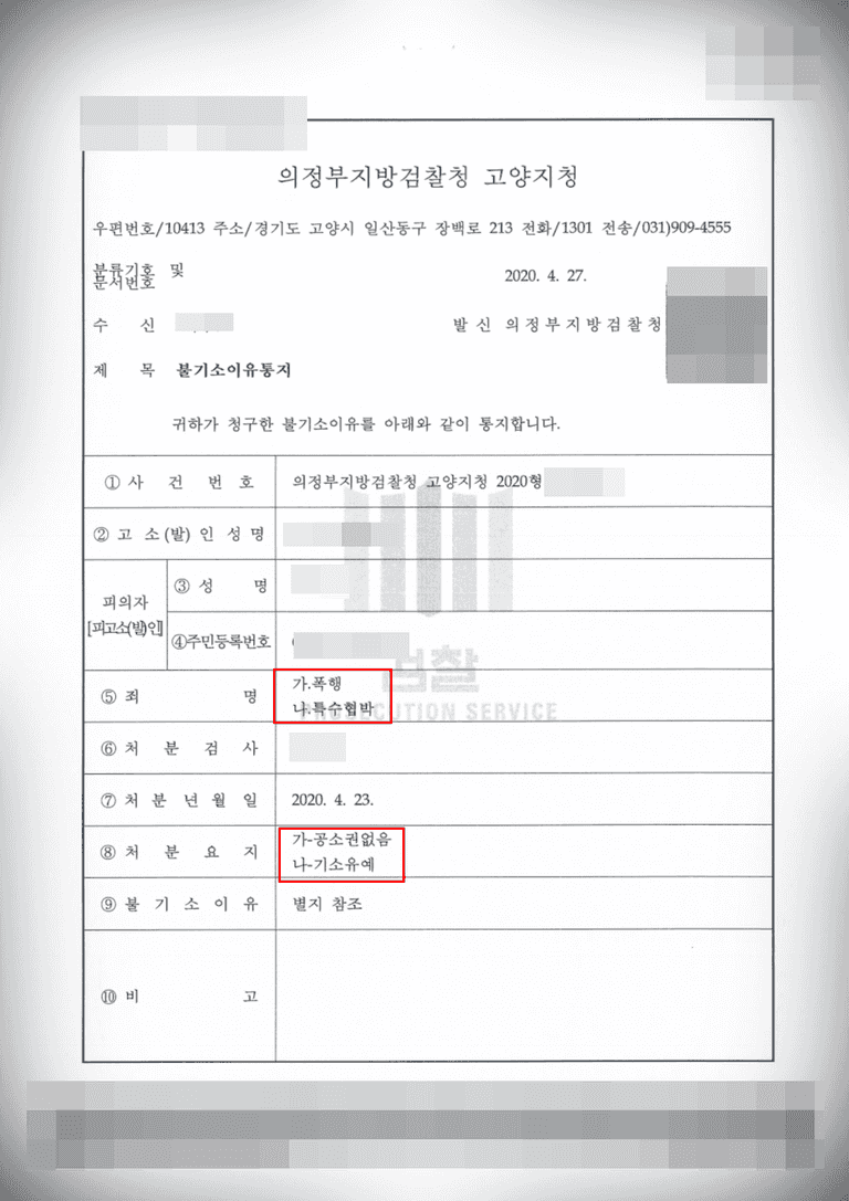 혐의 없음 및 기소유예로 방어
