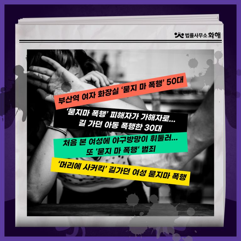 언제 어디서든 발생할 수 있는 무차별적인 범죄, 일명 ‘묻지 마 범죄’가 급증하면서 이제는 일상에서의 평범한 외출조차 두려움에 떨어야 하는 세상이 되었는데요. 폭행은 피해자에게 평생 정신적인 트라우마를 남길 수 있는 정말 심각한 범죄입니다.