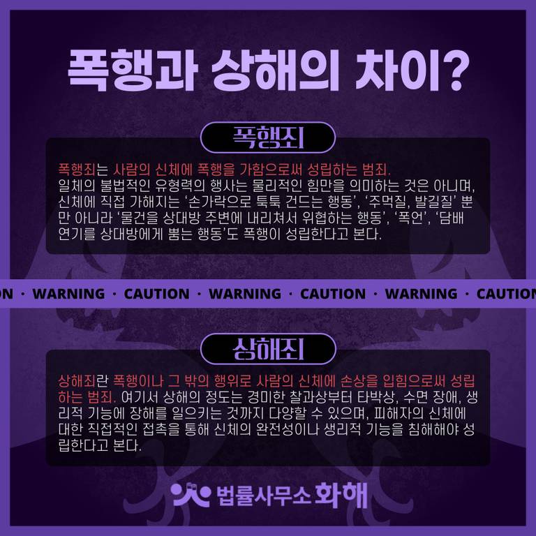 오늘은 법률사무소 화해에서 폭행죄·상해죄의 차이에 대해 알려드릴게요.