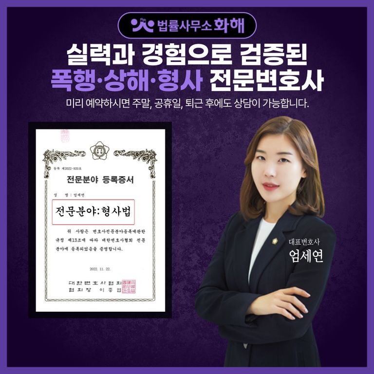 갑자기 폭행, 상해를 당하였다면 정신적인 충격 역시 클 수밖에 없습니다. 범죄를 겪은 피해자에게는 가해자를 마주하는 것도 무척 힘든 상황일 텐데요. 법률사무소 화해가 그런 의뢰인의 입장을 공감하고 곁에 함께 하겠습니다.