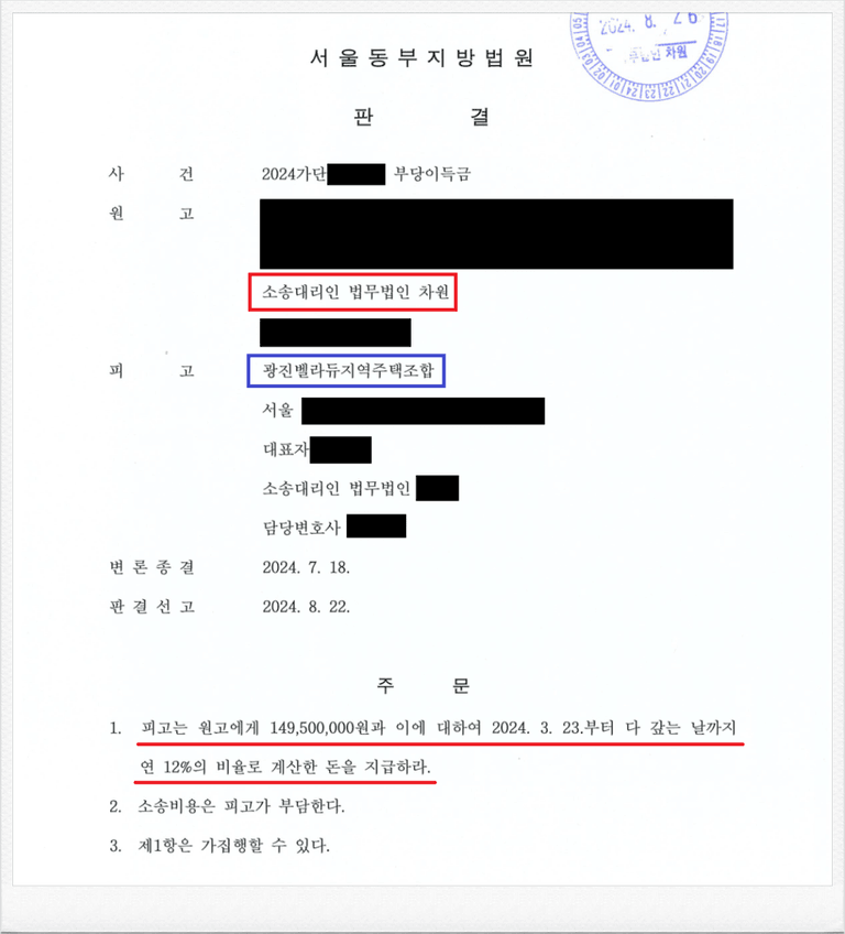 결국, 재판부는 이러한 저의 주장을 받아들였고, 피고는 의뢰인에게 기지급 받은 149,500,000원 및 이에 대한 지연손해금을 지급하라는 내용의 판결을 이끌어 내었습니다.