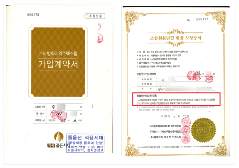 보장증서를 조합가입계약자들에게 발행,교부하였습니다.