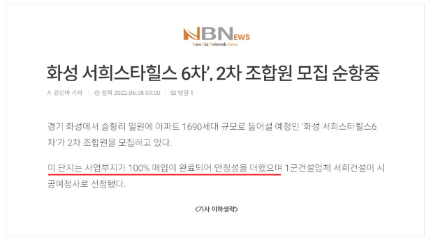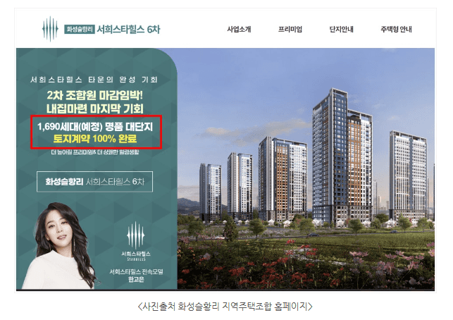 특히 지역주택조합 사업에서 가장 중요한 요소는 아파트를 지을 토지를 확보하는 것입니다. 간혹 지역주택조합 아파트를 재건축이나 재개발 사업과 혼동하시는 경우가 있는데 재건축이나 재개발은 이미 확보되어 있는 기존 공동주택(아파트)나 주택지역을 허물고 다시 신축하는 것인 반면, 지역주택조합은 아파트를 짓고싶은 사람들이 모여서 조합을 만든 후 아파트를 지을 부지를 새롭게 함께 매입하여 아파트를 짓는 민간아파트 건설사업입니다. 따라서 일정에 차질없이 부지를 확보하는 것이 지역주택조합 사업에 있어 가장 핵심적인 요소인데, 안타깝게도 현실적으로는 토지매입이 매우 어려워 이에 대한 허위·과장광고가 많고, 사업이 수년간 지체되는 경우가 허다합니다. 토지확보가 안정적으로 됐기 때문에 사업이 순조롭게 진행되어 내집마련을 빠른 시일내에 할 수 있다고 허위로 안내하여 조합가입을 유도하는 것인데, 오늘은 이러한 예시로 경기도 화성시에 소재한 화성슬항리 지역주택조합에 대해 설명해 드리고자 합니다.