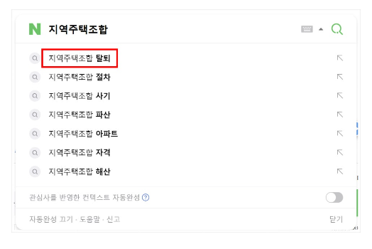 '지역주택조합'을 검색해보면 '지역주택조합 탈퇴'가 연관검색에 가장 먼저 나오고 뒤이어 '지역주택조합 사기'도 나오는 것을 확인할 수 있습니다. 수많은 언론과 지자체에서 지주택의 위험성에 대해 알리고 있지만, '저렴한 가격'을 내세우는 적극적인 홍보에 나도 모르게 설득되어 덜컥 계약을 하고 뒤늦게 후회하며 '탈퇴'에 대해 검색하게 되는 것이 아닐까 예상해 봅니다.