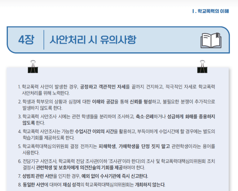 학교폭력대책심의위원회 결정 전까지는 학교폭력 피해학생,가해학생을 단정 짓지 않고