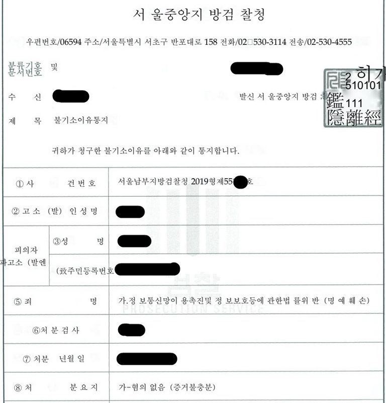이에 대하여, ① 고소인이 제출한 카카오톡 대화 내용을 보면, ‘000에서 사건 진행 중이다.’는 내용으로서 피의자가 ‘고소인이 사기꾼이다. 그 사업이 모두 사기이다.’는 취지로 비방한 사실을 확인할 수 없으며 ② 피의자가 제출한 동일한 카카오톡 방의 대화 내용 전문을 살펴보면, 000가 먼저 ‘혹시 고소하실 생각 있으신가요?’라고 묻자 이에 ‘저는 지금 형사 진행 중이에요. 지금도 000 다녀오는 중입니다. 000 주민등록이 000로 되어 있어요. 담당 수사관 알려드릴까요? 형사고소하실 거면 그쪽으로 직접 하시면 같이하는 효과가 있겠네요.’라고 대답한 것이 전체적인 사실관계로서, ‘사기로 고소하였다’는 사실만으로는 피의자를 비방했다고 볼 수 없고, 이것이 구체적인 허위 사실로서 피의자의 명예를 훼손시켰다고 볼 수도 없다.