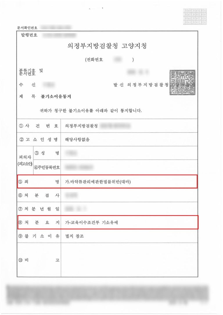 저는 반성문, 탄원서, 정신과 진료내역서, 단약서약서, 단약일기 등 여러 양형자료를 바탕으로 A씨는 호기심에 마약을 접하게 되었으나 진심으로 반성하고 있다는 점, A씨는 혐의를 모두 인정하고 알고 있는 범위 내에서 모두 진술하는 등 수사에 적극적으로 임하였다는 점, A씨는 초범이라는 점 ,A씨는 다시는 마약을 하지 않기 위해서 단약서약서, 단약일기를 작성하고 꾸준하게 정신과 진료를 받고 있다는 점 등을 적극적으로 어필하며 '이번에 한하여 마지막으로 기소유예 처분을 내려달라'는 내용의 변호인의견서를 여러 차례 수사기관에 제출하였습니다.