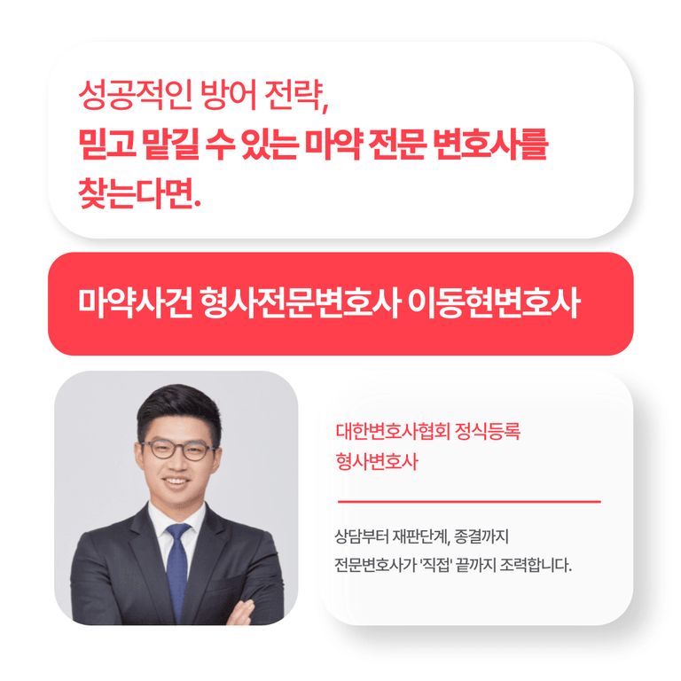 안녕하세요. 저는 수백 건의 마약사건에서 무죄, 무혐의, 기소유예 등 많은 좋은 결과를 도출해 낸 창원마약전문변호사 이동현변호사입니다.